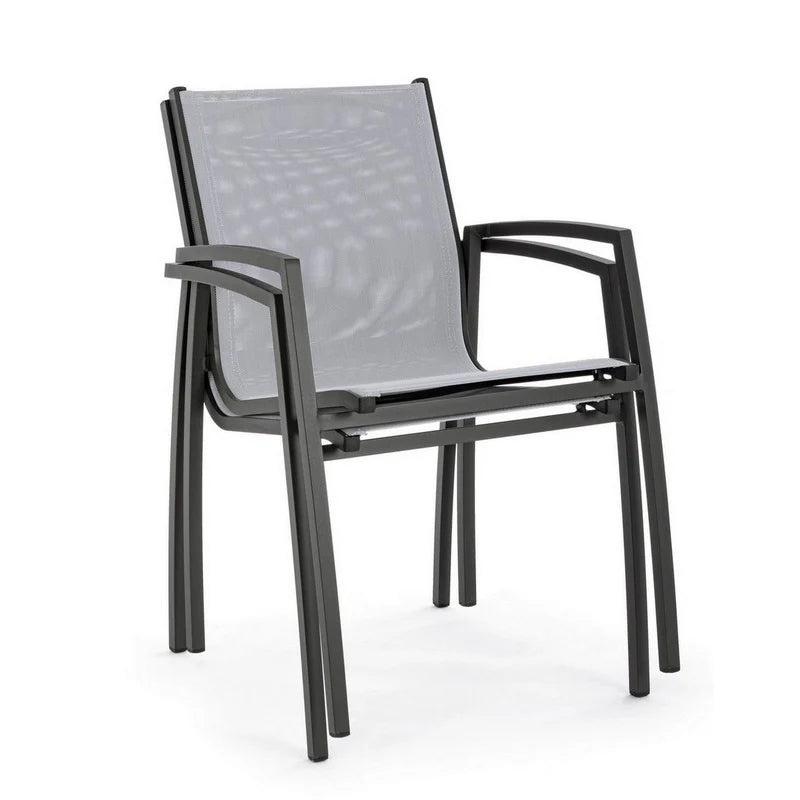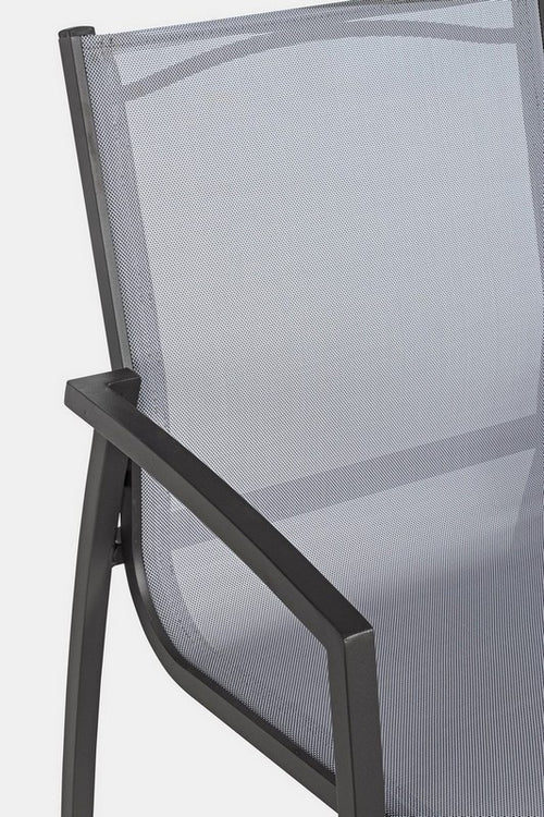 La seduta e lo schienale in textilene assicurano comfort e traspirabilità ottimali, consentendo un piacevole sostegno durante l'uso prolungato. Grazie alla sua caratteristica di essere impilabile, la sedia Hilla offre praticità e facilità di stoccaggio quando non in uso. L'imballo senza cartone si traduce in una scelta ecologica, riducendo gli sprechi e l'impatto ambientale.